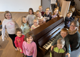 Passend zu den ersten Schneeflocken sangen 13 Kinder unter der Anleitung von Johanna Mazur im Bürgerforum in Jesenwang Winter- und Bewegungslieder.