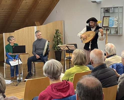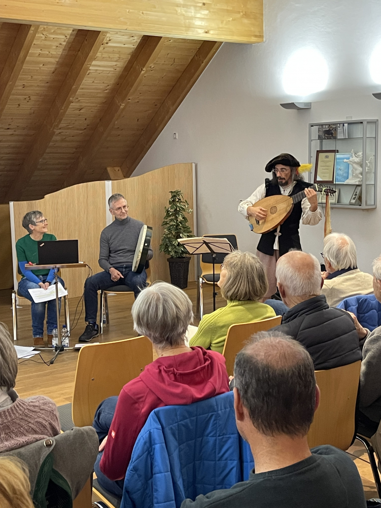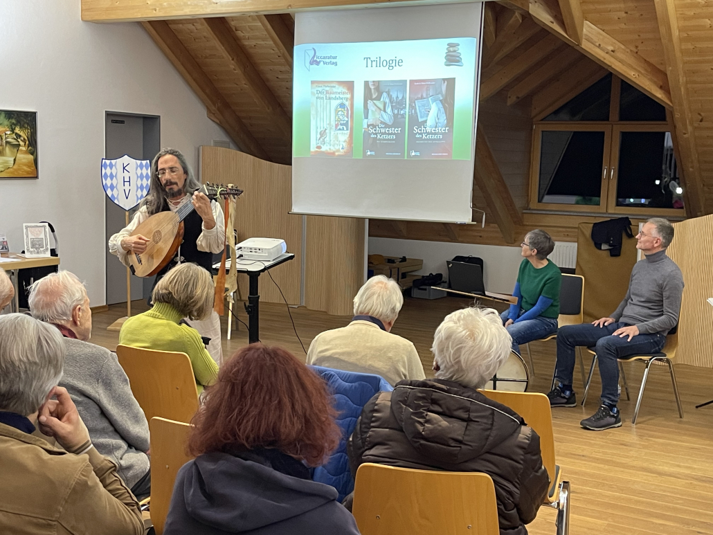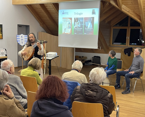 Über 20 Interessierte tauchten in die Geschichte von Anna Schuster, die 1527 inmitten von Verfolgung und Verrat ihren Weg sucht, ein. Das Autorenduo Uschi und Klaus Pfaffeneder lass nicht nur Passagen aus dem Roman „Die Schwester des Ketzers“, sondern entführte in eine Welt voller Intrigen, Liebe und Wendepunkte. Am Abend des 13. November 2025 wurde in Jesenwang, auch durch den Minnesänger und seine Laute, Eric Müller, die Epoche des Bauernkrieges zum Leben erweckt.